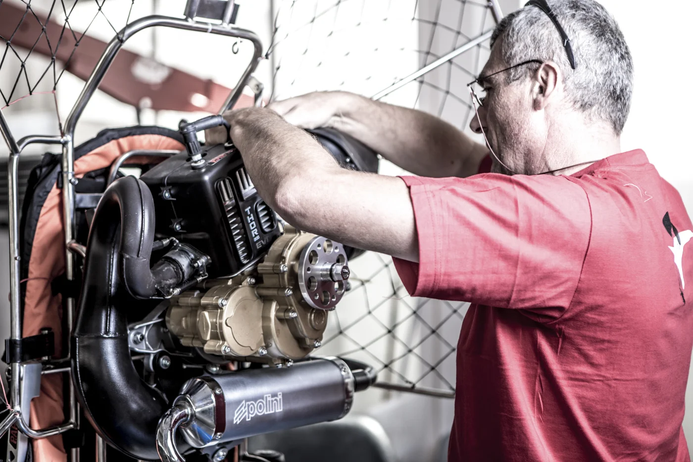Our fully equipped workshop and highly trained staff specialise in maintenance and repairs for Paramotor and Xcitor aircraft, as well as canopies and accessories. We hold spare parts for Pollini, Top 80, Fresh Breeze Xcitor, Vitorazzi and Top 80 Engines.